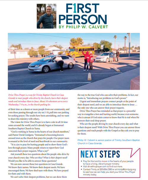 Casa Grande/Eloy/Arizona City host Drive Thru Prayer on Monday through Saturday at area churches that are part of the Drive Thru Prayer Family. Moreover, we have churches in Mexico, Mississippi, North Carolina, Oklahoma, Tennessee, Texas, and Washington are among the growing DTP Network! We have also recently expanded into South America, with Ecuador launching its first sites.